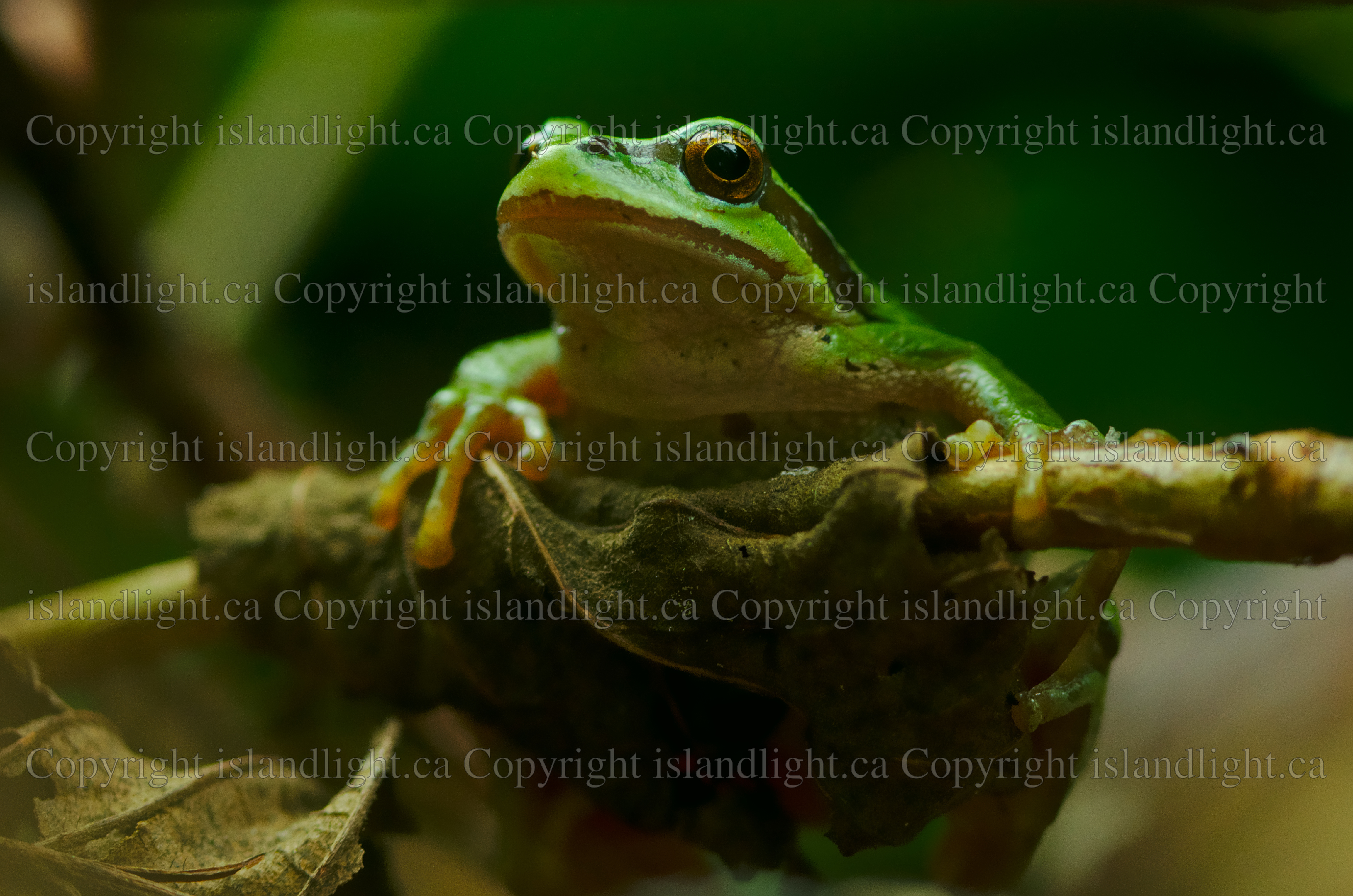 This Tree Frog photo from Cortes Island British Columbia, Canada is available for affordable rights-managed usage. Please contact us with the details of what type of use, size requirements and distribution you have in mind and we will be in touch with you as soon as possible. Find out more about Island Light's stock nature photography >>>